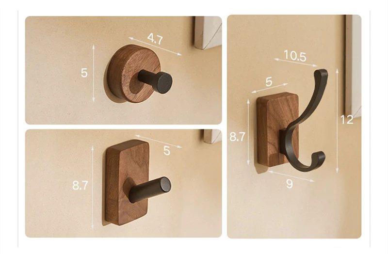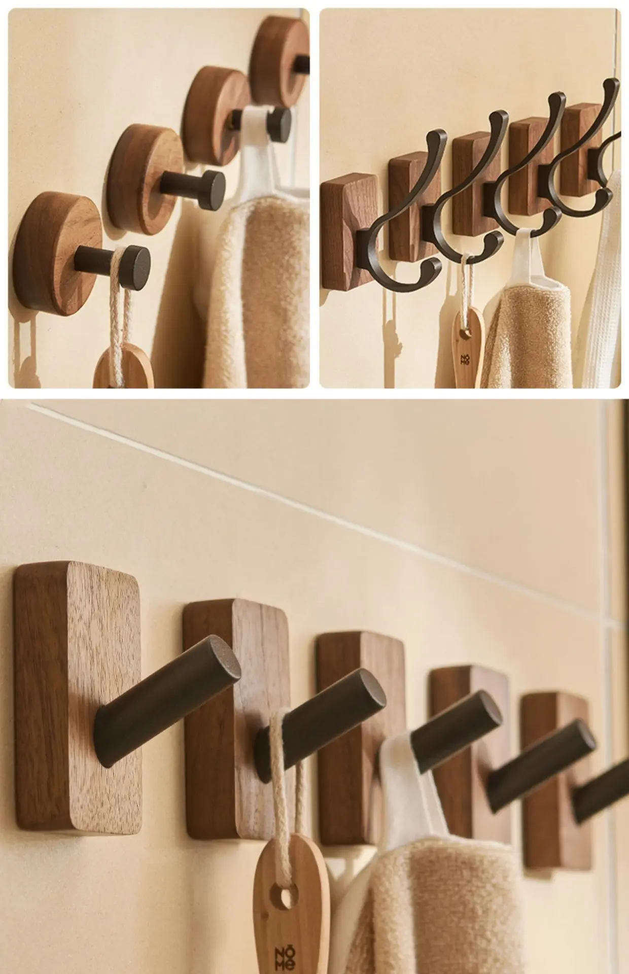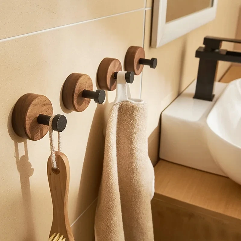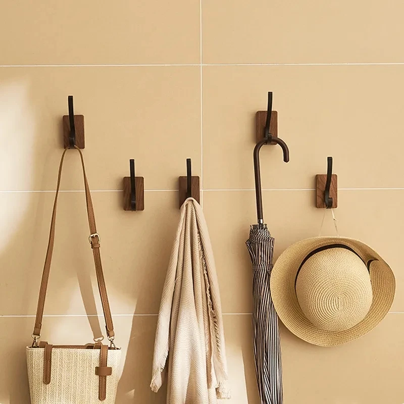 New Simple Solid Wood Hook Walnut Hanging Hanger Bathroom Wall Hook Bedroom Coat Storage Rack Home Towel Key Decoration Hook